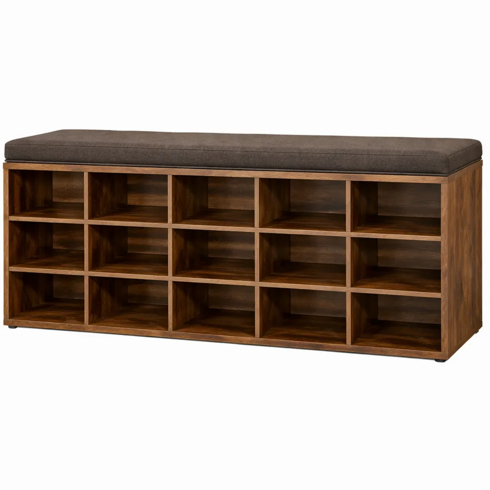 Organisateur de Chaussures avec Siège Rembourré et 15 Compartiments pour Entrée