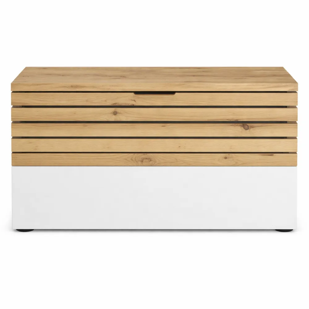 Banc de Rangement Moderne pour Entrée en Bois Blanc et Chêne